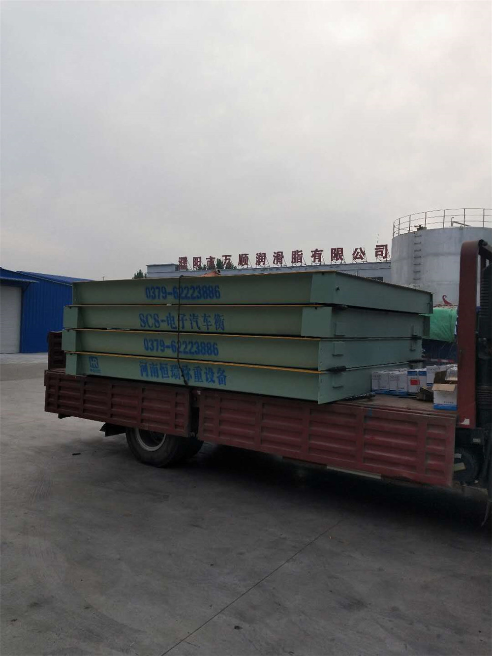 采購背景:濮陽萬順潤滑脂公司位于濮陽市臺前縣產(chǎn)業(yè)集聚區(qū),主營潤滑脂生產(chǎn)銷售。為方便生產(chǎn)材料計量稱重,對比多家地磅廠地磅后,訂購了中原恒瑞地磅廠3.2x16m定額100噸電子汽車衡,現(xiàn)電子汽車衡已安裝到位并投入使用。