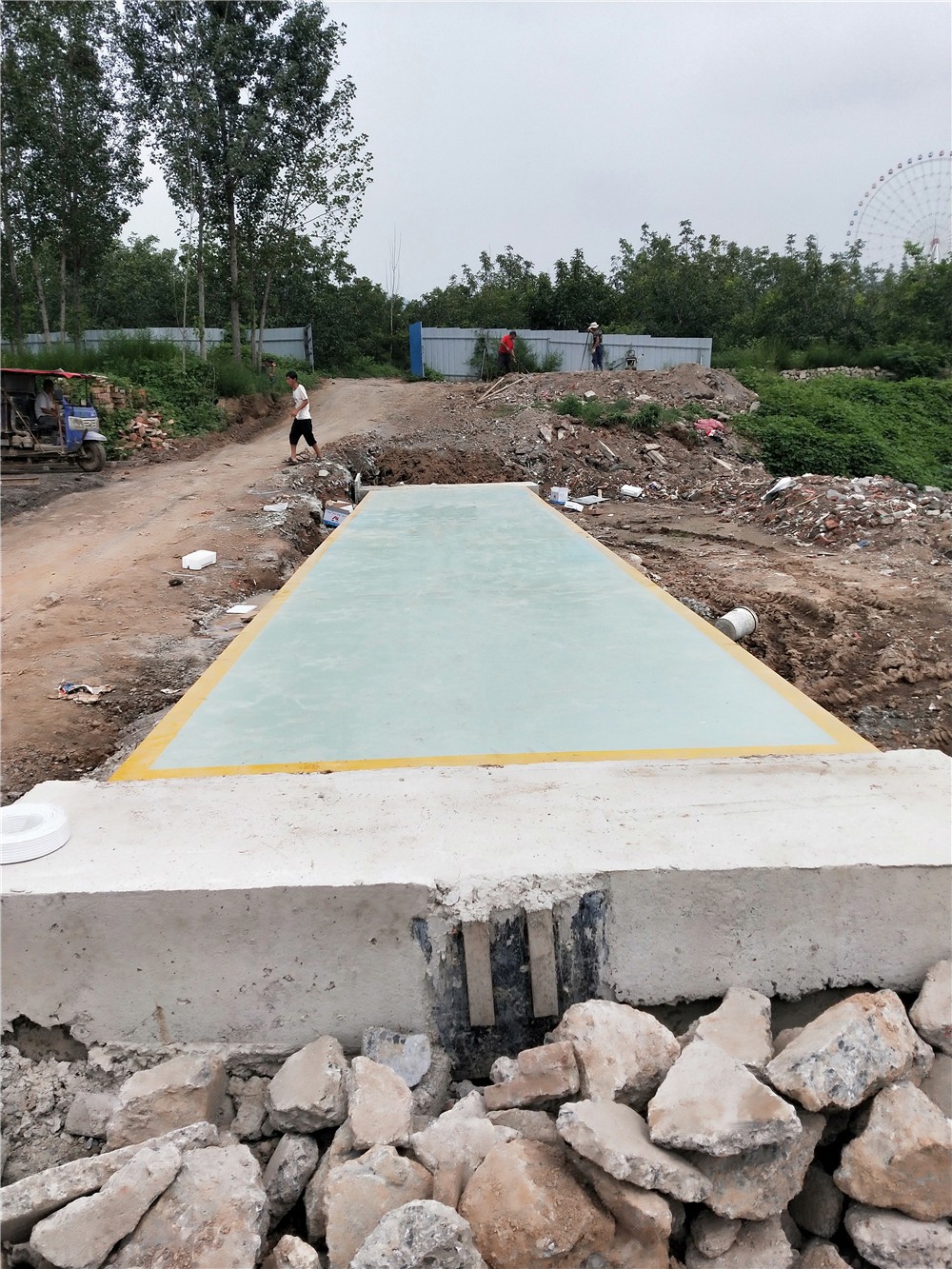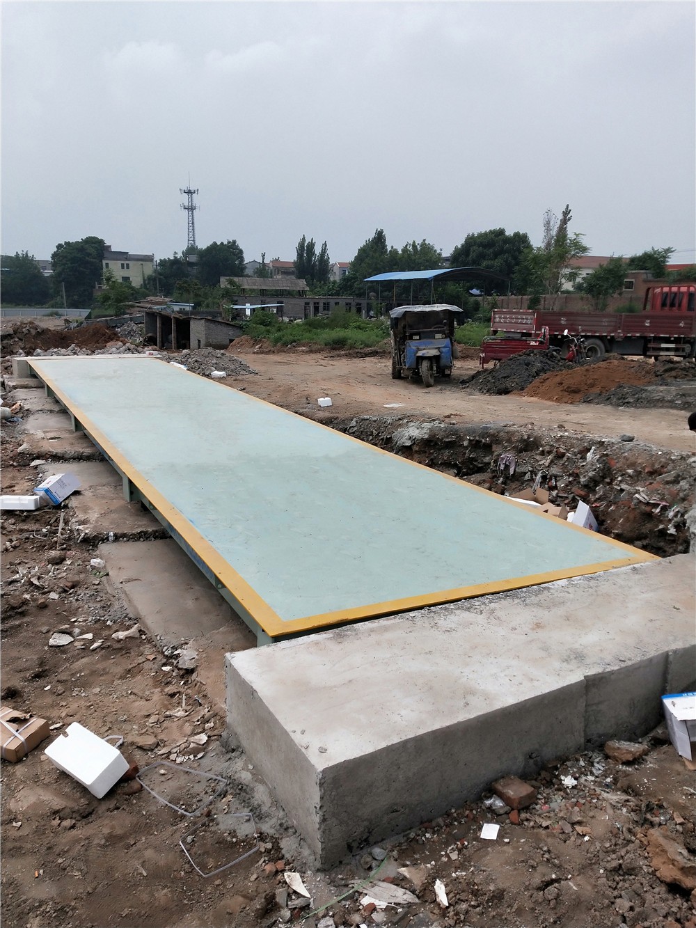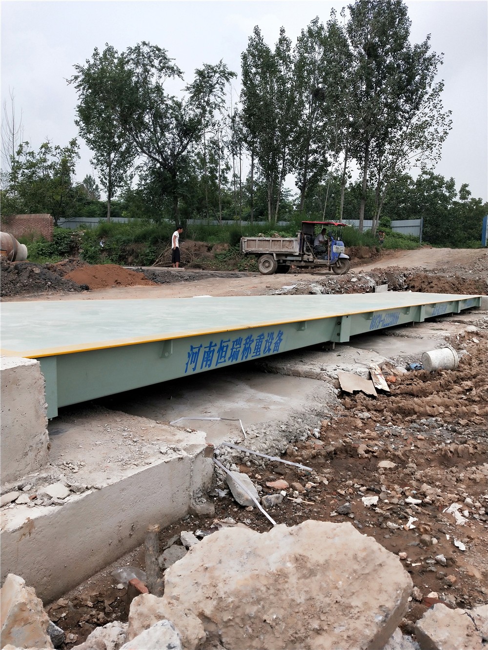 采購背景:焦作市集富環(huán)保科技有限公司是一家致力于建設(shè)生態(tài)環(huán)境、生產(chǎn)高品位彩磚的企業(yè),擁有全套自動化生產(chǎn)設(shè)備和成熟的制磚技術(shù)、以石米、中粗砂為原料、采用高頻震蕩、高壓成型的生產(chǎn)技術(shù)、免蒸、免燒、一次成型、專業(yè)生產(chǎn)及互鎖和綠色環(huán)保為一體的海綿磚、 PC磚、通體透水磚、彩色水泥路面磚、植草磚、水工護(hù)坡磚和擋土墻磚。為方便環(huán)保磚的生產(chǎn)、銷售稱重計(jì)量,對比多家地磅廠地磅后,訂購了中原恒瑞地磅廠3x16m定額150噸電子汽車衡,現(xiàn)電子汽車衡已安裝完成并投入使用。