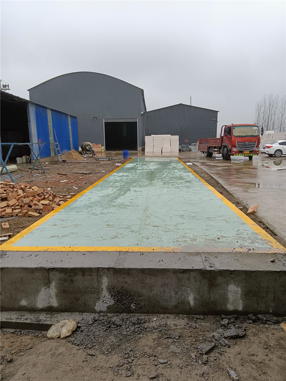 采購背景:周口淮陽縣智鑫保溫材料有限公司位于河南省周口市淮陽區(qū)大連鄉(xiāng)李樓大隊張莊自然村北200米118號,主營臍塑板、網(wǎng)架板、聚苯板、外墻保溫板、粘結、抗裂砂漿、網(wǎng)格布、外墻膩子、保溫材料加工、銷售。為方便進廠原材料稱重計量,訂購了中原恒瑞地磅廠3x16m定額100噸數(shù)字汽車衡,現(xiàn)汽車衡已安裝完成并投入使用。
